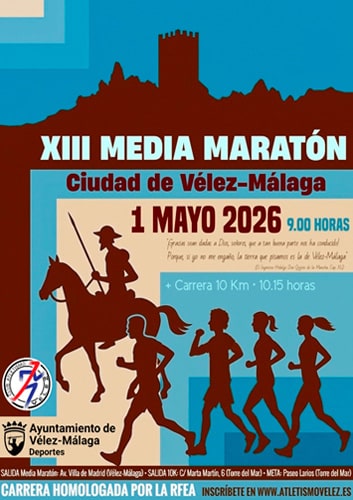La prueba veleña celebrará el 1 de mayo de 2026 su decimotercera edición. El circuito urbano de 21.097 metros de longitud, estará homologado por la Federación Andaluza de Atletismo y situará la salida en la avenida Villa de Madrid. La competición discurrirá por las principales calles del municipio malagueño y la localidad vecina de Torre del Mar.